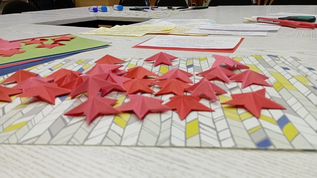 В течение нескольких занятий ребята совершили квест-путешествие "Вечные Звёзды". Они знакомились с краеведческими материалами о весьегонских Героях Советского Союза, узнавали про их подвиги, послевоенную биографию и места их захоронения. Ребята посетили самое значимое место памяти в Весьегонске – это мемориальный комплекс, где на площади Славы неподвижные Неизвестный солдат, памятные мемориальные доски с выбитыми именами наших героев-земляков, гордо хранят память о Великой Отечественной войне. В продолжение темы, ребята начали изготовление открыток к Дню защитника Отечества чтобы поздравить весьегонских участников боевых действий разных исторических военных событий.