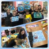 Весёлые, шумные юные художники рисуя, смеялись, обсуждали школьные дела, в общем отлично провели время!