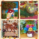 удивительные композиции из листьев и веток, необычные животные и сказочные персонажи из шишек и овощей, яркие панно и картины, передающие атмосферу золотой осени.