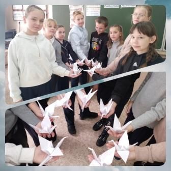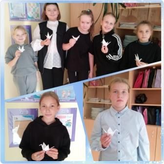 В кружке «Мастерилка» ребята изготовили из бумаги нежных журавликов в технике оригами, вкладывая в каждую фигурку частичку своей души и благодарности.