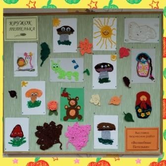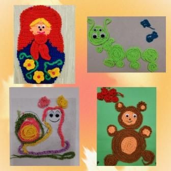 Дети кружка "Петелька" под руководством педагога дополнительного образования Куликовой И. С. из связанных разноцветных цепочек решили сделать аппликацию "Волшебные петельки".