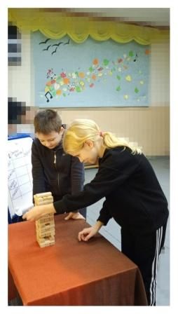 Вместе с Мастером игры ребята разделились на две команды и попробовали свои силы в популярных настолках: Дженга, Мемори, Крокодил, Квизмания, Элиас.