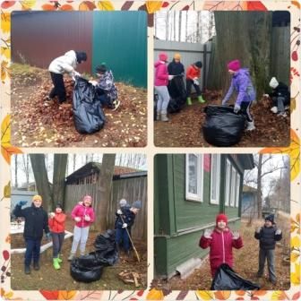 В последний пасмурный день октября, на участке Дома детского творчества раздавался весёлый смех и шутки . "Осенний десант" под руководством педагога Волгиной И. В. активно приступил к борьбе с опавшими листьями и сухими ветками.