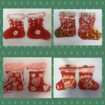 Ребятишки из кружков "Пластилиновая фантазия и "Цветной мир" нарисовали новогодние ёлочки, используя обычные коктейльные трубочки и подготовили новые валенки и рукавички для Деда Мороза.