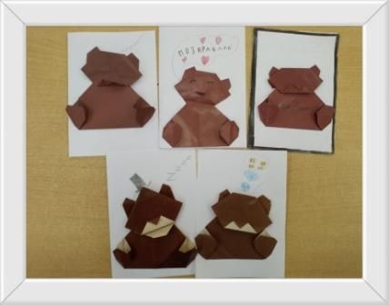 Под чутким руководством педагога д. о. Фёдоровой О. Н. дети создали целую семейку косолапых в самых разных техниках: могучие и серьёзные медведи - в технике оригами, весёлые "мини-мишки" из бисера и лесные гиганты, старательно нарисованные красками.