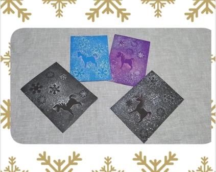 В ход пошли интересная техника рисования - методом набрызга через трафарет, а также фантазия и хорошее настроение. А чтобы открытки стали по-настоящему особенными, дети добавили символ года — лошадь