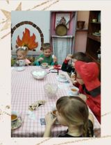 А в конце, конечно же, всех ждали "снежные" угощения, вкусный чай из самовара у русской печки, подарки и радостные улыбки