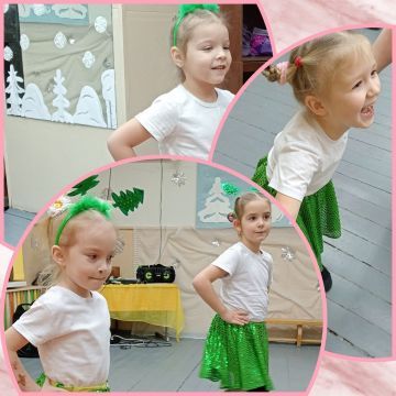 игровые танцы — и, конечно, трогательный момент, когда девочки показали мамам разученный к празднику танец «Ёлочки»