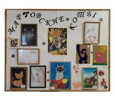 Наши усатые герои получились самыми разными и очень необычными. На выставке уже можно увидеть котов, выполненных из фетра, в технике оригами и папье-маше, яркие аппликации, пластилинографию и рисунки в самых разных художественных техниках.