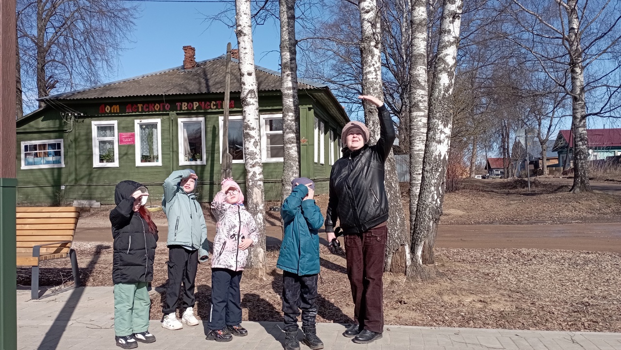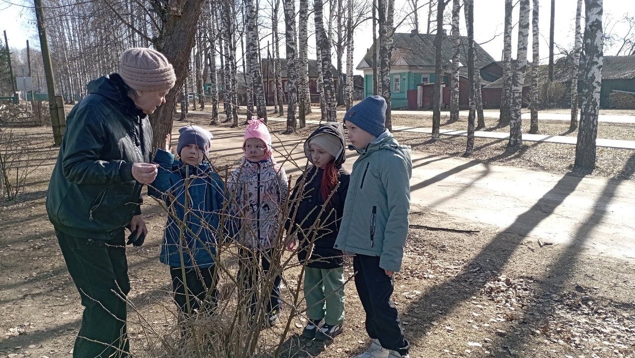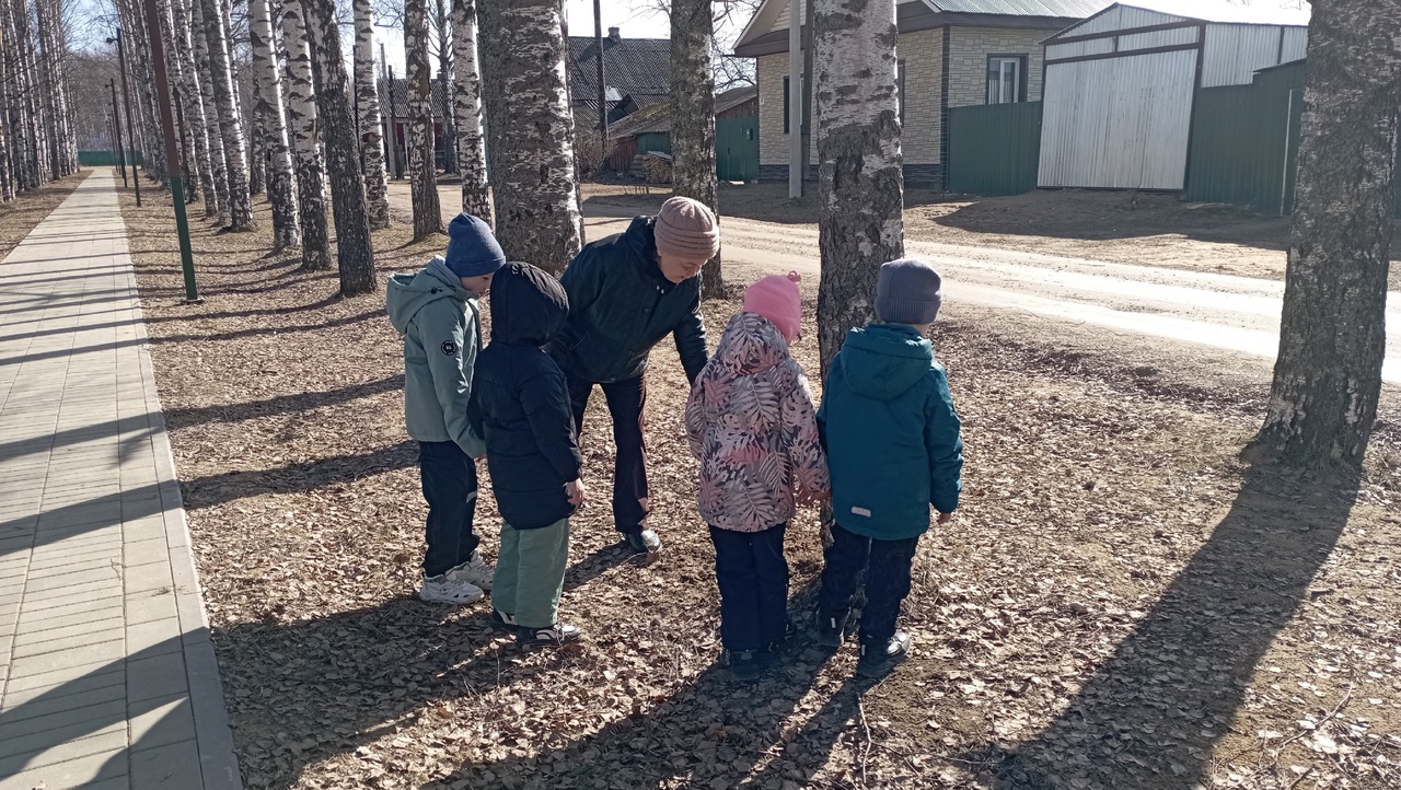 Название выбрано не случайно. Через высокое голубое небо яркое солнышко сегодня особенно активно пробуждало природу. Ребята наблюдали за набухшими почками, высматривали только-что пробившиеся зелёные травинки из-под старой листвы. Мартовское солнце стало теплее, на это указывает то, снега совсем нигде не осталось, а лёд на огромной луже подтаял. Земля задышала, просыпается природа от зимнего сна.