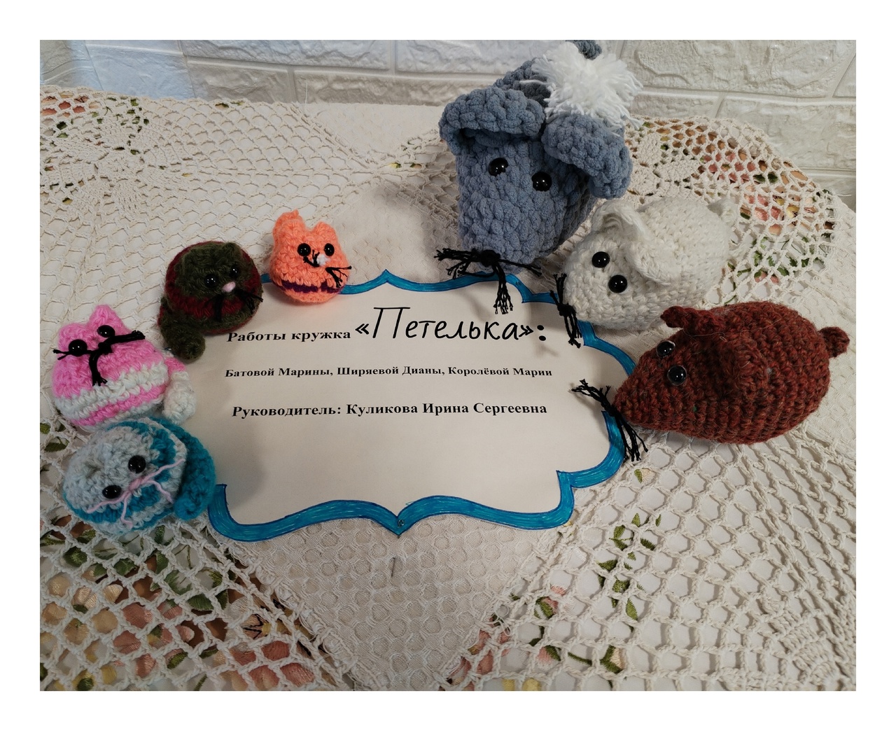С наступлением долгожданной весны, при входе в ДДТ, ребят и взрослых встречают не только яркие цветы, но и удивительные, мягкие зверята: забавные китята, загадочные змеи, семейство котят и симпатичные, упитанные мышки.Весь этот "весёлый зоопарк" связали крючком юные мастерицы кружка "Петелька" под руководством педагога д.о. Куликовой И. С. Вязание - искусство хоть и древнее, но не утратившее своей актуальности и по сей день. Умение управляться с крючком и спицами не только помогает снять стресс и улучшать настроение, но и даёт возможность радовать родных и друзей полезными, практичными и просто очаровательными сувенирами, изготовленными своими руками.