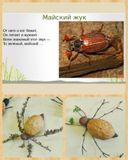 Сегодня дети группы "Мастерилка" изготовили из природных материалов (скорлупы грецких орехов и разных веточек) милых, забавных и одних из самых крупных насекомых - майских жуков.