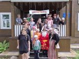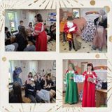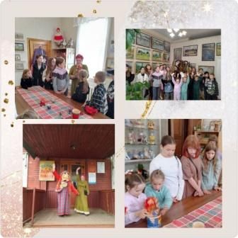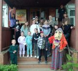 Там сказочницы "вели" детей таинственными тропами. Заданий было много: называли сказки по иллюстрациям, тащили из музейной корзины предметы и отгадывали из какой они сказки и какому персонажу принадлежат, и, даже, готовили сценки к сказкам "Золотая рыбка" и "Красная шапочка". За каждое задание ребята получали кусочек царства, а пройдя все испытания, из кусочков составили тридевятое царство).