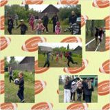 Размявшись, наши ребята разделились на две команды: "Звёзды" и" Зелёный помидор" и посоревновались в силе и ловкости в игровой эстафете.